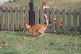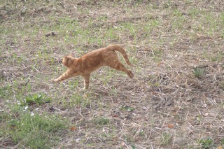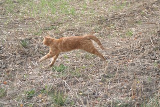 Faster than the trot but not as fast as a full speed run, the canter is a three beat gait where at least one paw is always in contact with the ground and where, at some phases of the stride, three paws are in contact with the ground. When the forelegs or hind legs are about to make contact with the ground at the foremost point of the stride, the last paw to touch down will be placed in advance of its pair. The paw that is advanced forward the furthest is said to be the “lead leg” so a cat can canter on either a right or a left lead. During the canter there is no crossing of back and forelegs, known as overreaching and there is no suspension phase, in other words at all phases of the gait at least one paw is in contact with the ground (Beaver, 1992).