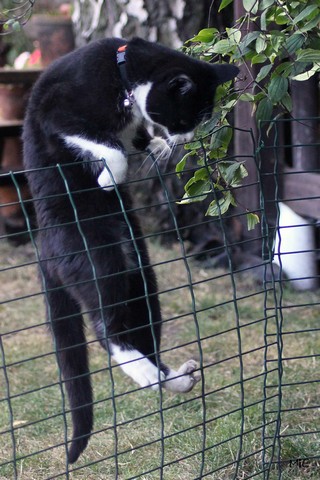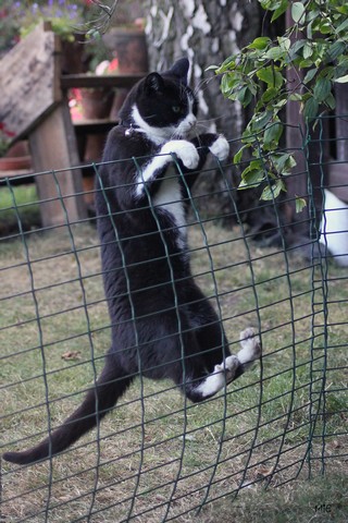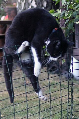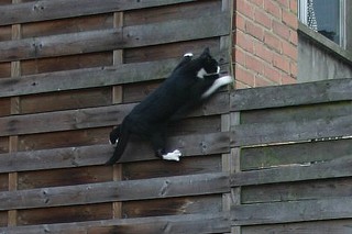 Cats can climb upwards, downwards and into or out of structures. They climb by utilising their claws which they can alternately extrude to grip onto the surface and then retract again to release their grip and move the limb higher or lower down the surface. Limb movements during climbing follow the same pattern as those used in walking, or occasionally may approximate a gallop (particularly seen when climbing tree trunks) (Beaver, 1992)