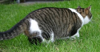 When crawling the cat lowers its body to the ground by flexing both fore and hind limbs so that the ventral abdomen (belly) is in contact with or held just above the ground. The cat will then walk (see later definition) with the body held in this position. Both the head and tail will be held in line with or below the line of the back. This movement will frequently be seen when a cat is moving away from a threat such as another cat or if it is travelling under an object.
