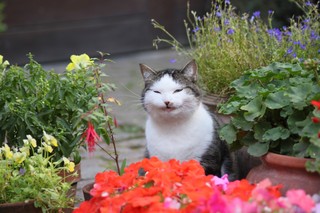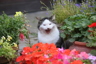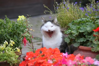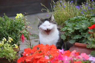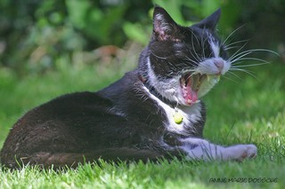 The act of opening the mouth to its fullest extent so that the entire interior of the mouth can be seen. When the mouth gapes widest the lips also retract to reveal the gums and the buccal (outer) surfaces of the teeth. During the yawning process first inhalation (breathing in) of air and then exhalation (breathing out) of air occur. In most instances the eyes will close as the cat yawns.