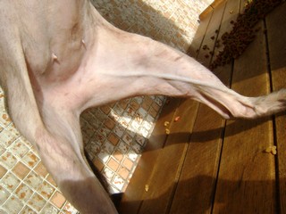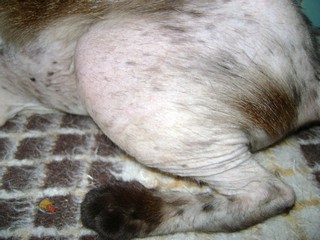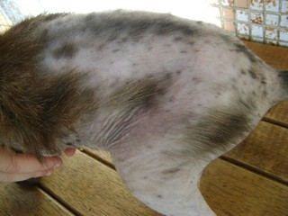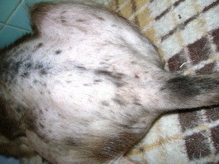 Grooming intensity and/or duration and/ or frequency may vary from the norm in two directions (over-grooming and under-grooming). Over-grooming Grooming to the point where hair loss is seen may occur in cats for numerous reasons, both medical and behavioural (Bradshaw, 1992). Patterns of alopecia (hair loss) may also vary although the most commonly seen pattern is hair loss over the caudal half of the body with a bilaterally symmetrical pattern. In some cases grooming occurs so intensively that skin lesions may be caused. As well as changes in intensity, duration and frequency of grooming leading to hair loss, an increase in nibbling or biting action when grooming may give rise to alopecia. The following are pictures taken of a cat with severe hair loss through over-grooming.