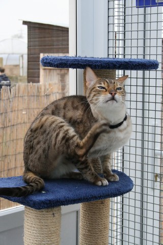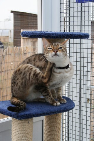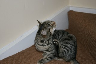 The following sequence shows the movement of the hindleg as the cat scratches and although the foot is not clear in the photograph due to the speed of movement of the action, the extended toes (which allow the nails to be drawn through the coat) can be seen.