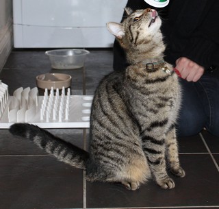 The aim of an ethogram is to recognise and define behaviours in which an animal undertakes. An example of how a behaviour is defined in an ethogram is given below for the example of a cat sitting: “SITTING – Cat is positioned with its front legs extended straight, front paws and rump on the ground” (Ellis and Wells, 2010, p.58). This example demonstrates the specificity of information used in an ethogram. To be able to measure a change in behaviour, the behaviours must be defined to ensure that others know what behaviour was being observed and could identify the same behaviours in another animal or at another time point if so desired, i.e. ensuring reliability. It is also useful to generate some common terminology to be able to compare between tests, i.e. if one study refers to resting, one study refers to an animal lying down and one refers to the behaviour as sleeping, this limits the value of the research and can cause confusion. Therefore it is most useful to ensure that there is common terminology between individuals. EXAMPLE: The following photographs illustrate cats in the sitting position. However, note how the posture of each cat is slightly different. For example, note the position of the tail; in one photograph the tail is wrapped around the front legs and in another it is extended away from the body. However both cats would be described as sitting.